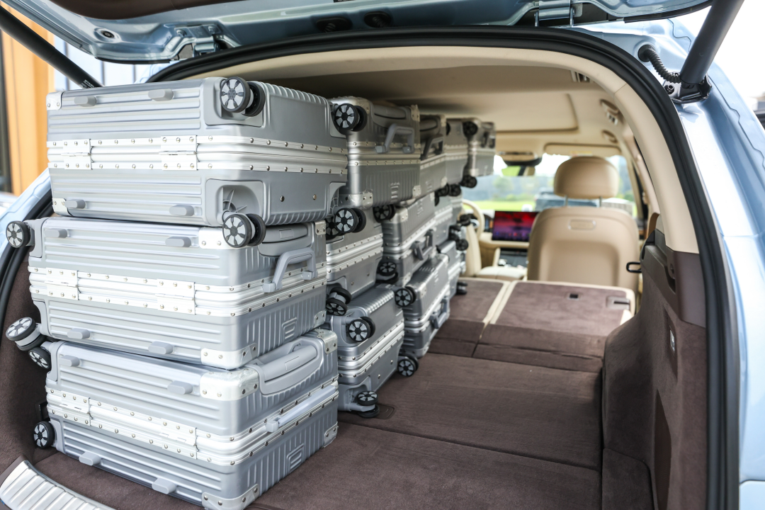 再比如后备厢,标容686L可放12个20英寸登机箱,二排放倒最大拓展至1619L、30个登机箱。