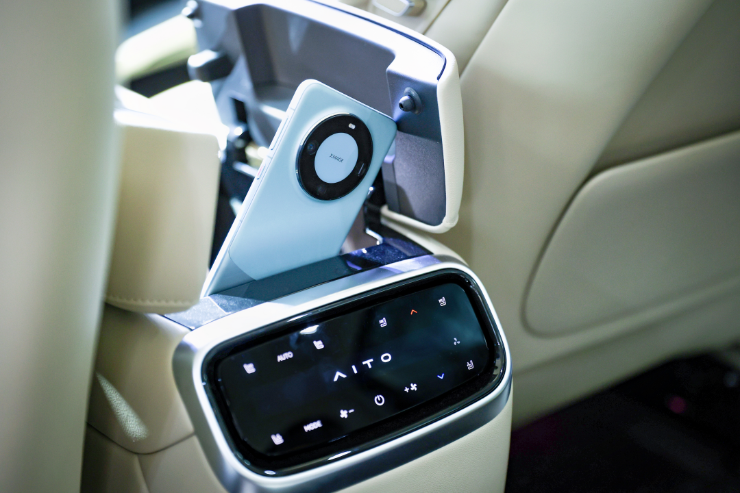 相比远房品牌的鸿蒙座舱,新M7的高含华量体现在“原厂白给”。比如后排座椅此次配置了MagLink接口,可以即挂即连华为平板。