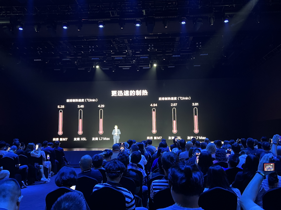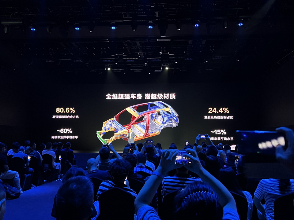 在一个半小时的产品介绍里,充斥着这样的细节对比。如今一个新能源车发布会最短30分钟就能迅速完成战斗,问界新M7用三倍时间、九倍干货,建立自己的现实扭曲力场。讲真,踏出门的那一刻,你的脑海中只剩下好像全程都很厉害,但就是说不出来到底厉害在哪里。