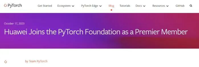 10月18日,PyTorch基金会正式宣布华为作为Premier会员加入,这也是中国首个、全球第十个PyTorch基金会最高级别会员。