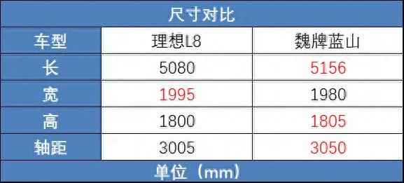 像蓝山这款车,本来就是照着理想 L8 的模子刻的,两车都是家庭取向的大六座 SUV ,不管是尺寸,还是动力参数,都非常相似。