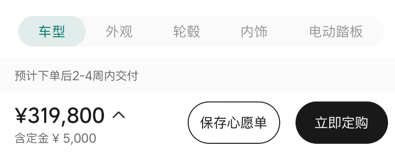 而在理想 APP 显示,今天预订理想的车子,交付时间是 2-4 周。