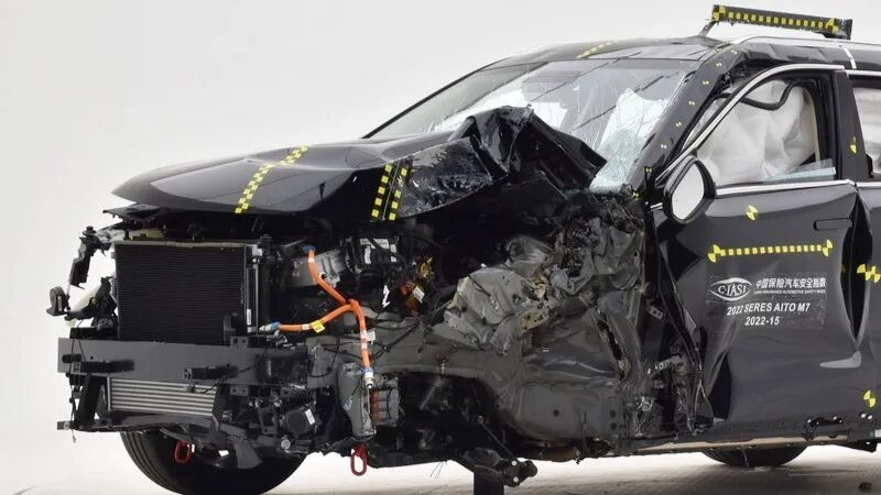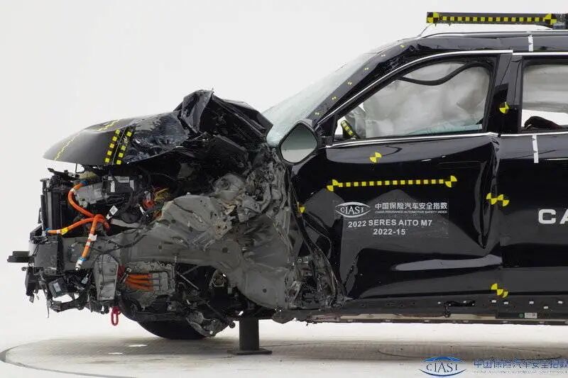 比如脱胎于C-NCAP 2021安全设计标准的问界M7,就在批发的五星还没到手之前,被中保研撞了个七零八落。