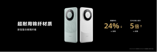 此次玄武架构选择了锦纤材质。作为一种具有超韧、超轻特点的纤维材料,它一方面能够将抗冲击能力提升5倍并加强回弹性,另一方面可以使后盖的表面处理效果提升均匀性和稳定性,并大幅提高耐磨度。不仅如此,从外观美学而言,锦纤后盖还可以带来玉石般的立体纹理和丰富层次感,为消费者提供柔美光感和不易沾染指纹亲肤感的产品体验。