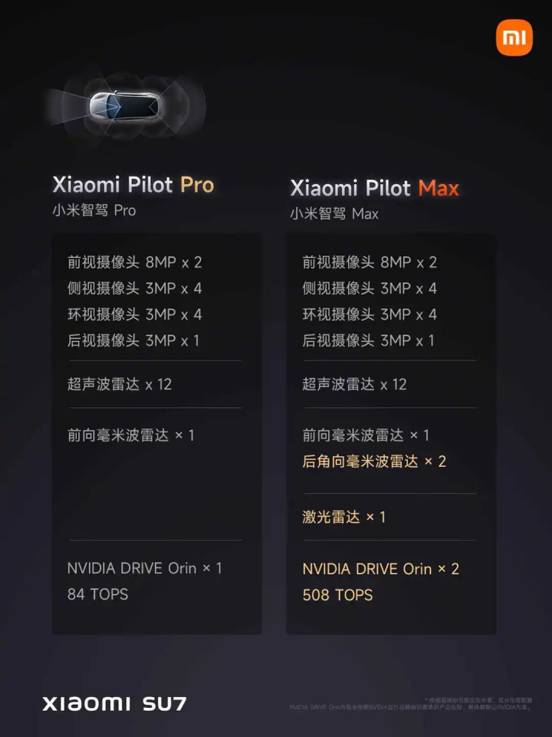 * Xiaomi Pilot Max,整体算力为 508TOPS,支持更为复杂的城区领航