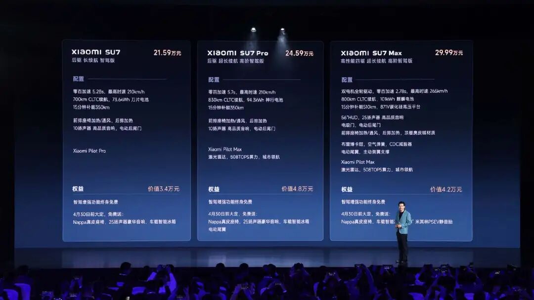 Xiaomi SU7 创始版:21.59 /29.99 万元(限量 5000 台)