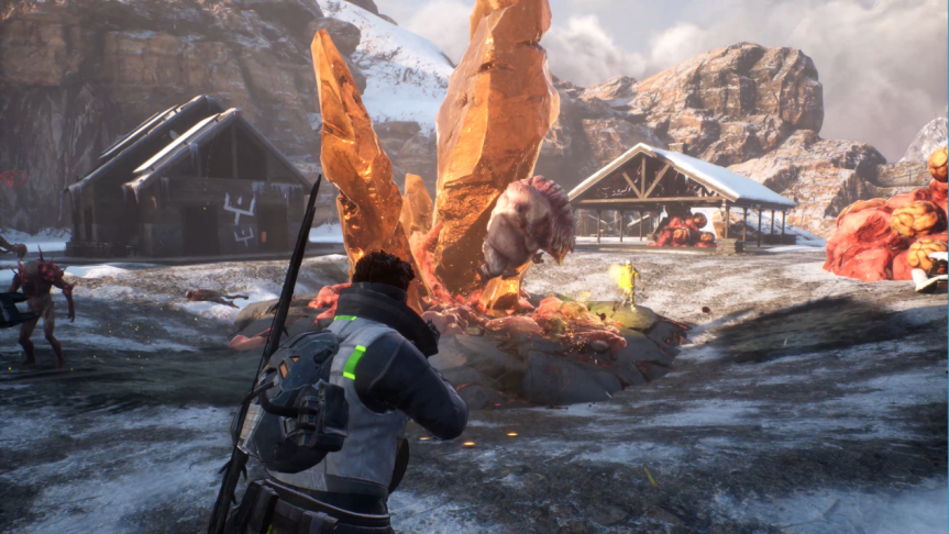 《Scavengers》是款很独特的游戏,我认为它最大的独特点可以分为两部分,我们先说第一部分,PvPvE环节。在《Scavengers》中,玩家面临的威胁不仅来自同样的玩家小队,而有很大一部分来自地图上的AI遭遇战。更加有趣的是,这些AI不仅有和玩家装备相同的敌人,还有大量战斗方式完全不同,像传统ARPG游戏中BOSS一样的存在。